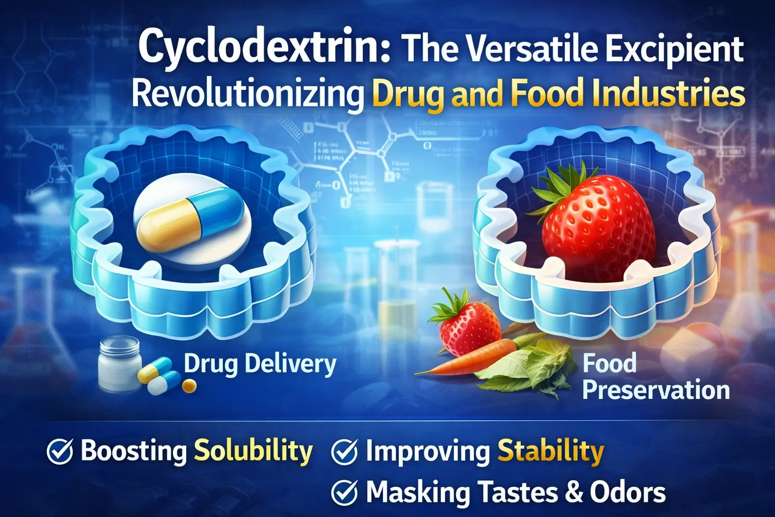 Odkrycie cyklodekstryny to jeden z najważniejszych kroków naprzód w historii żywności i medycyny. Ten naturalnie występujący cykliczny oligosacharyd zmienił sposób, w jaki dostarczamy leki, utrzymujemy świeżość żywności i wykorzystujemy wiele innych chemikaliów w przemyśle. Produkt tworzy kompleksy inkluzyjne, które rozwiązują ważne problemy w wielu dziedzinach dzięki swojej charakterystycznej strukturze molekularnej, która ma hydrofobową wnękę wewnętrzną i hydrofilową powierzchnię zewnętrzną. Ta elastyczna substancja pomocnicza zmienia naukę formułowania i procesy produkcyjne na całym świecie. Może zrobić wszystko, od poprawy wchłaniania leków po ukrywanie złego smaku leków.